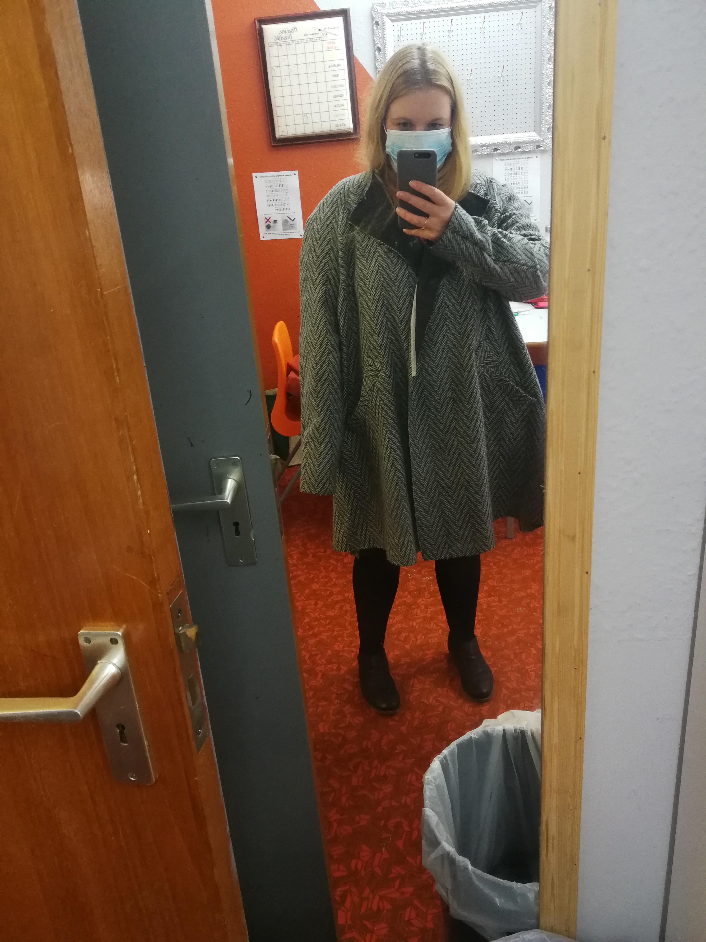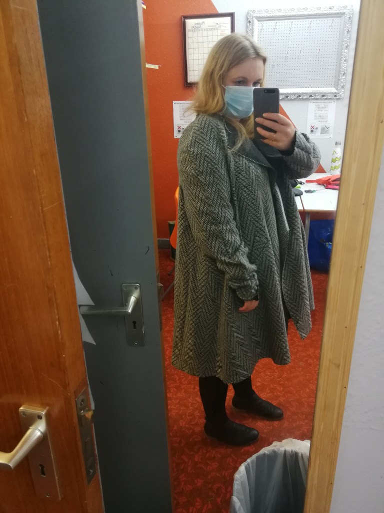 Saying that though, I spent a lot of time fitting the coat, despite making a toile first. The toile was a size smaller than my measurements, as advised in blog posts about the coat. The toile seemed quite tight, and as I wanted to be able to wear my coat with warm layers, I decided to size up by two, and didn’t toile again as I didn’t have time before the course started.