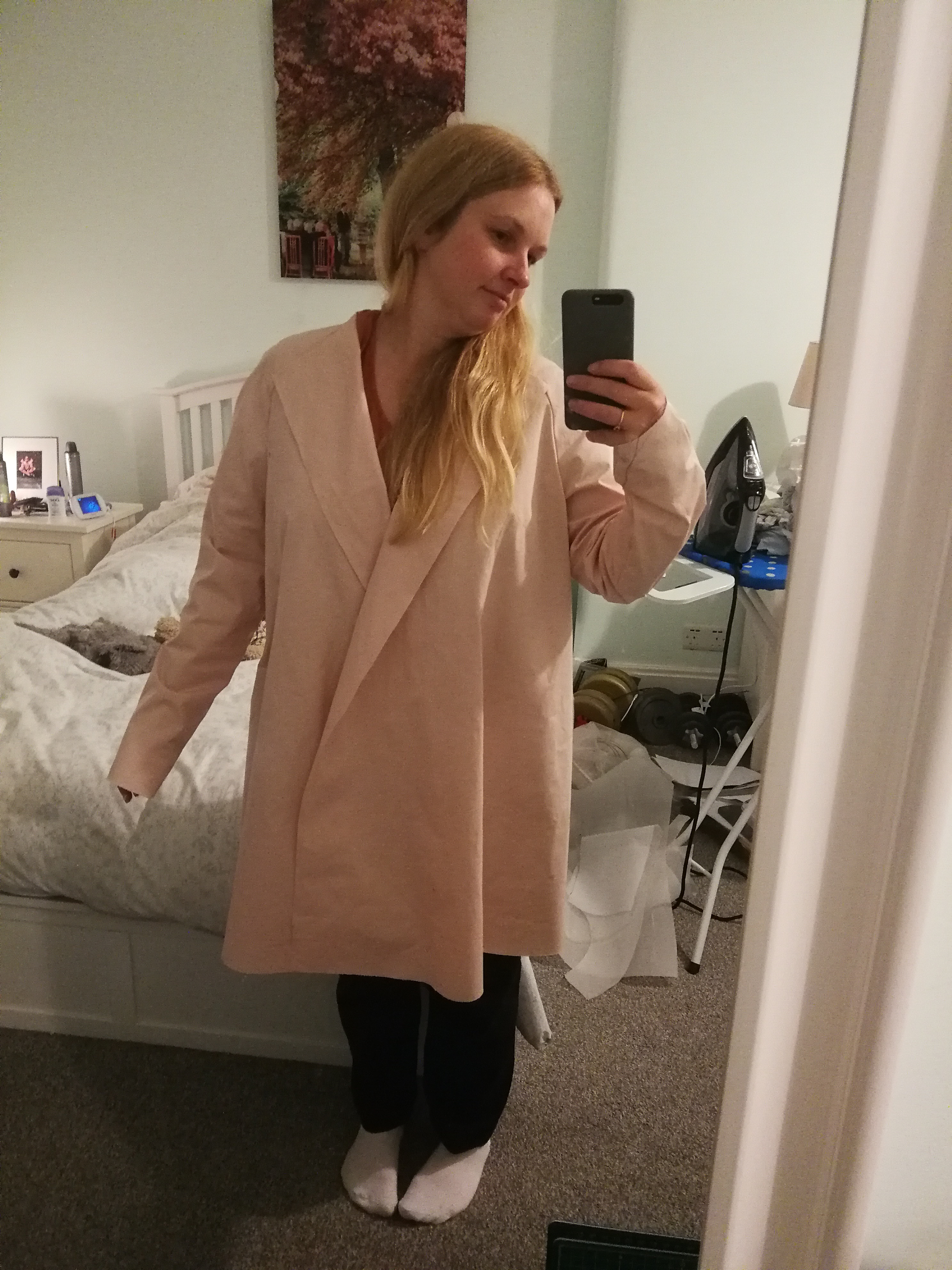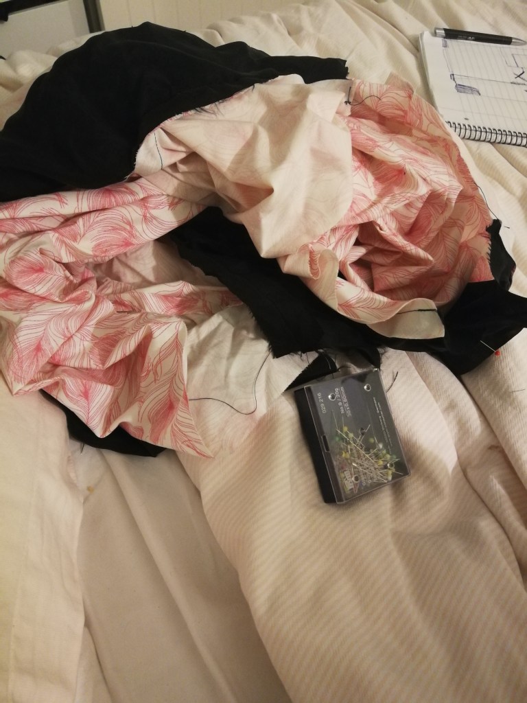 The two sizes up matched my bust measurement. Experience should have told me going with my bust measurement is a recipe for disaster, as I have a really small frame and quite big boobs, so of course the sleeves were too big, and way too wide on the shoulders. I spent a lot of time adjusting the sleeves but I’m happy with them now. I reshaped the arm at the top seam to better fit my frame, taking out over an inch from the seam at the same time. I also took two inches off the length – this was perhaps a little too much, and so I’d maybe change it to 1.5 inches next time.