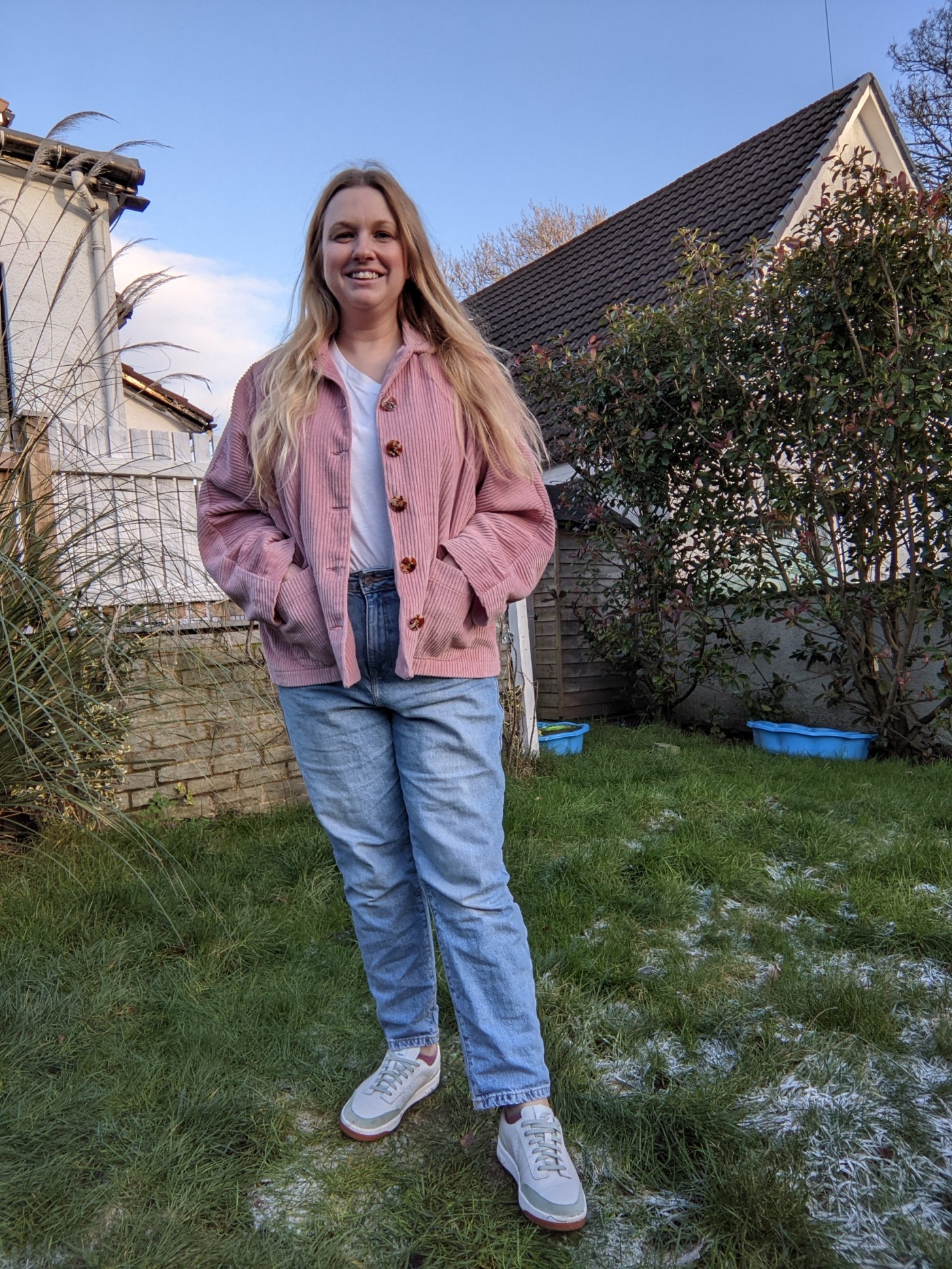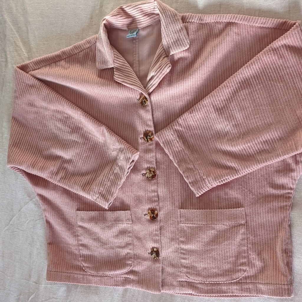 I’ve mentioned before that I’m really into pink in the last few years, I think it really suits me. This chunky cord was from Sew Me Sunshine. I seem to get a lot of fabric from Harriet and the team, and it’s also the fabric that I tend to use soon after I buy it, rather than it wallowing in my stash. It’s lovely and soft and I originally thought I’d make trousers with it, but after sewing a pair of PJs for my mum with the Agnes pattern, I felt a sudden inspiration to make a shacket in pink with the PJ top pattern. So I went for it!