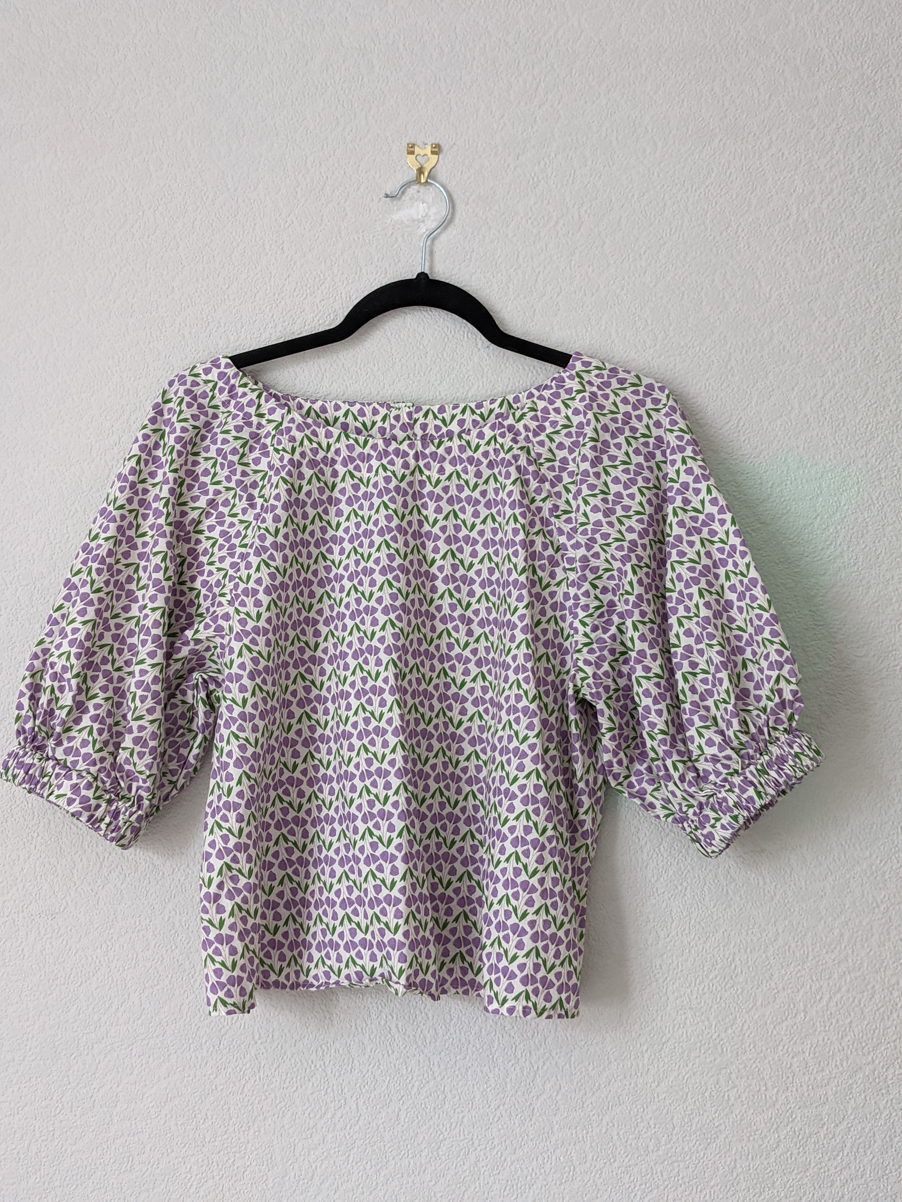 A good puff sleeve needs a fabric with some structure – my Vali top used a cotton gingham which was lovely and soft but with some structure, and for this top I opted for cotton lawns. You might recognise the fabric here – I used the offcuts from this top to make a Seamwork Madhu, which I shared last summer. I really did get 2 tops out of just 2 metres of fabric! Anyhow, I love this ditsy tulip print, I also have it in a yellow colourway which I’m planning to sew up this summer – I bought them from Blackbird Fabrics last year as I just couldn’t resist.
